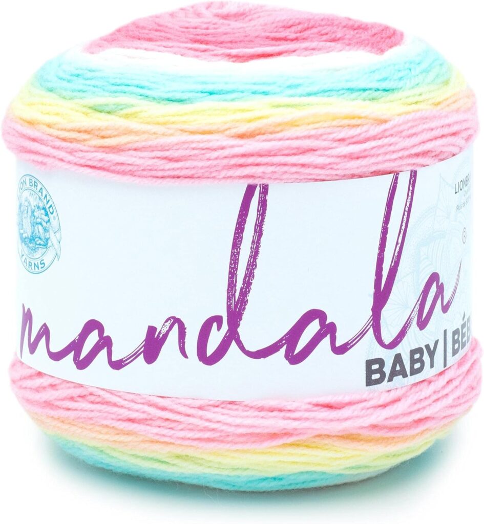 Lion Brand Mandala Baby Yarn (100% acrylic, 5.3 oz/150g, 590 yards) is a DK weight yarn with stunning, self-striping color transitions. Its vibrant colors and soft texture make it a go-to for crochet blankets with effortless stripes. Machine-washable and tumble-dryable on low, it’s practical for busy parents. The generous yardage makes it cost-effective for larger projects, and its OEKO-TEX certification ensures baby safety.